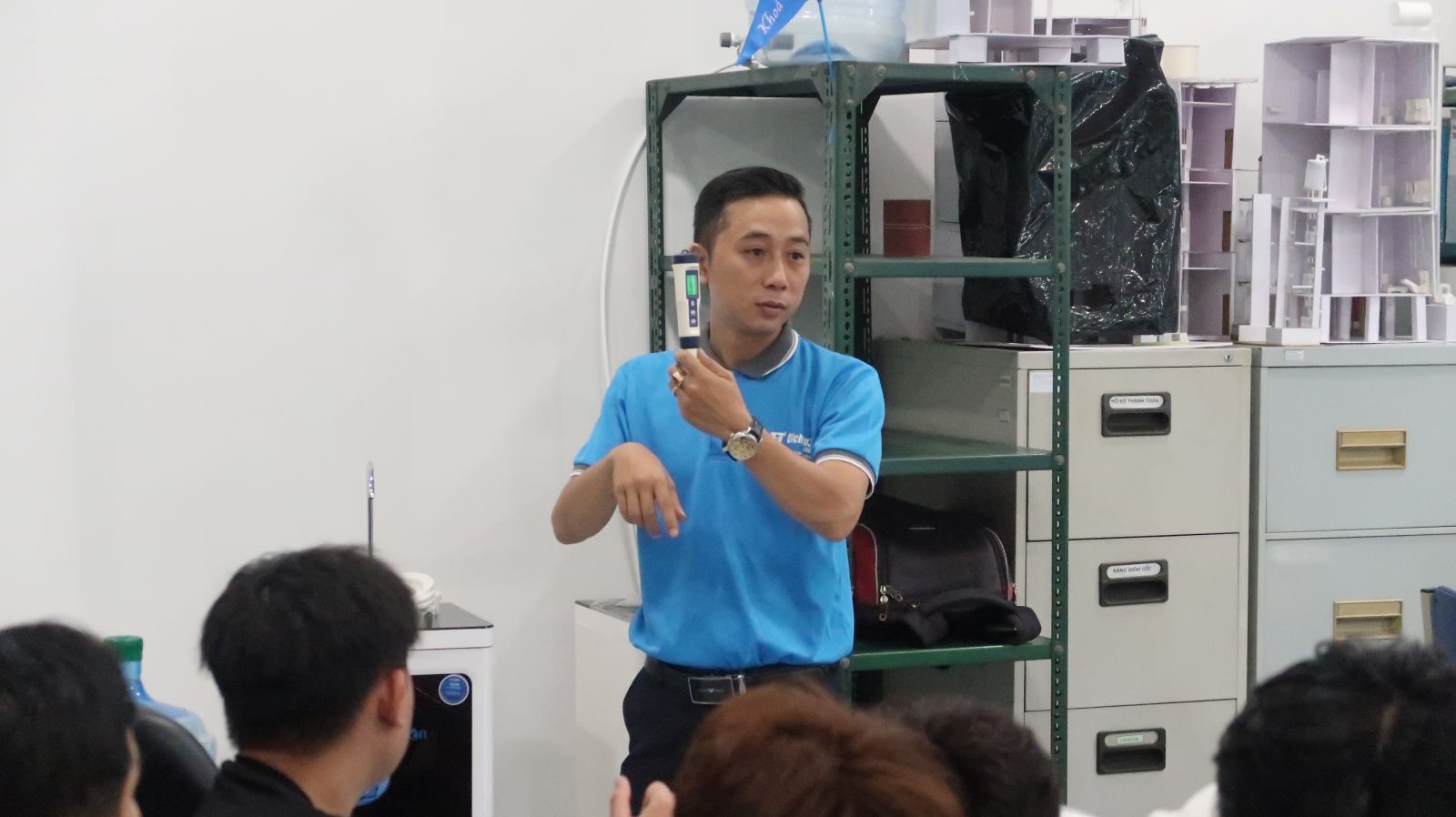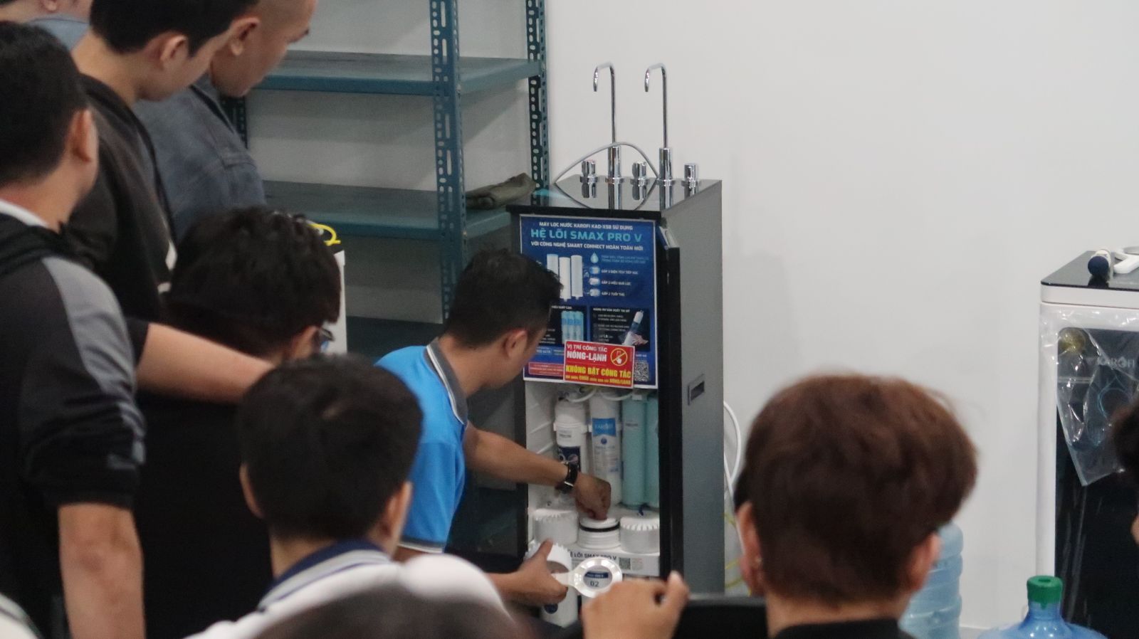 Sinh viên thực hành kỹ thuật với máy lọc nước