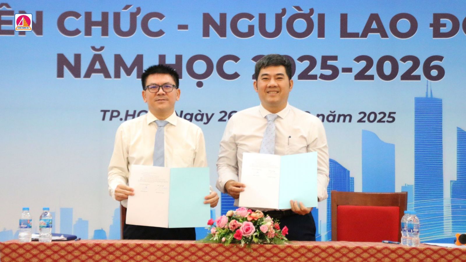 Một trong những điểm nhấn quan trọng trong Hội nghị Viên chức – Người lao động năm học 2025 - 2026 là phần ký kết giao ước thi đua giữa chính quyền và công đoàn nhà trường. Đây là cam kết mạnh mẽ, thể hiện sự đồng lòng của hai tổ chức trong việc nâng cao chất lượng giáo dục và đảm bảo quyền lợi cho toàn thể viên chức, người lao động.