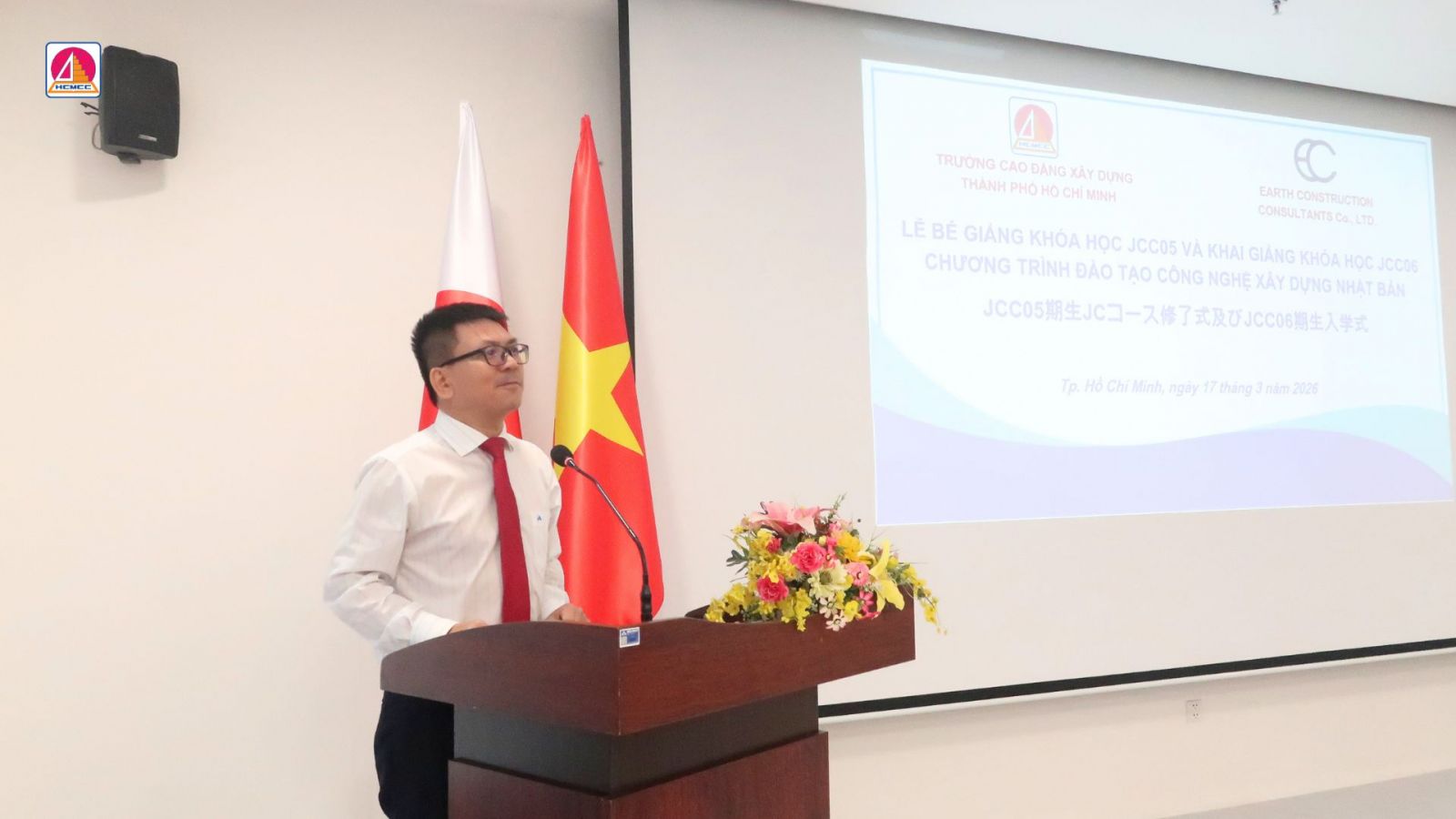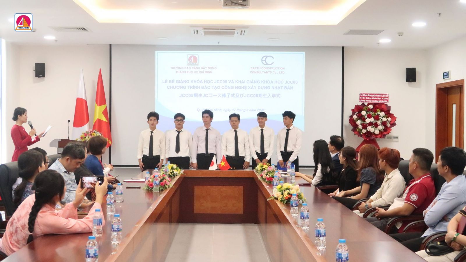 Sáng ngày 17/03, tại trường Cao đẳng Xây dựng TP.HCM, không gian sôi động và tràn ngập niềm vui khi buổi Lễ Tốt Nghiệp Khóa học JCC05 và Khai giảng Khóa học JCC06 "Chương Trình Đào Tạo Công Nghệ Xây Dựng Nhật Bản" đã chính thức diễn ra. Buổi lễ không chỉ là dịp để chúc mừng sự hoàn thành của các bạn học viên, mà còn là dịp để tôn vinh sự nỗ lực và sự phát triển trong suốt quãng thời gian học tập.