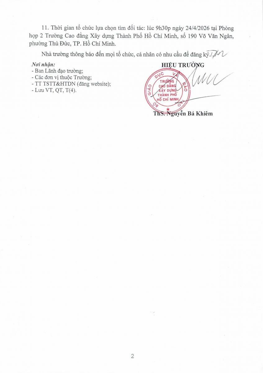 Thông Báo Về Việc Lựa Chọn Đối Tác Khai Thác Căn Tin Trường Cao Đẳng Xây Dựng TP.HCM
